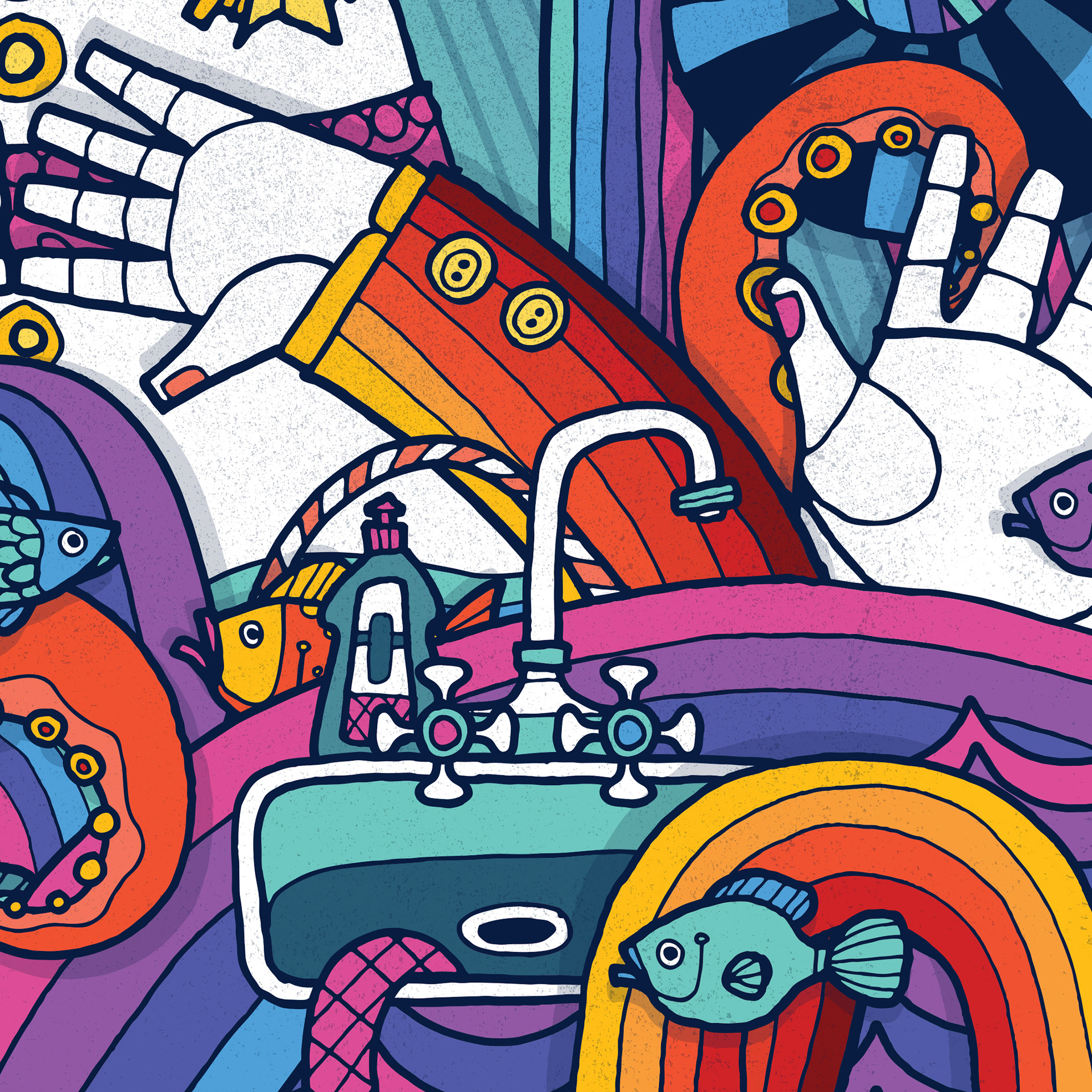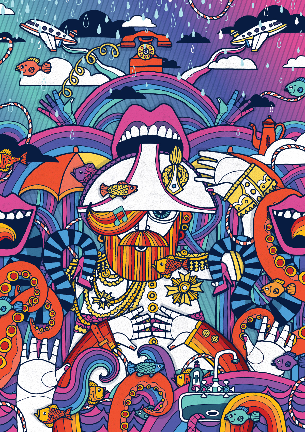Inspired by the Paul & Linda McCartney song 'Uncle Albert / Admiral Halsey' this was originally designed as a limited edition print. This psychedelic illustration includes everything but the kitchen sink. No, wait... the kitchen sink is there too!