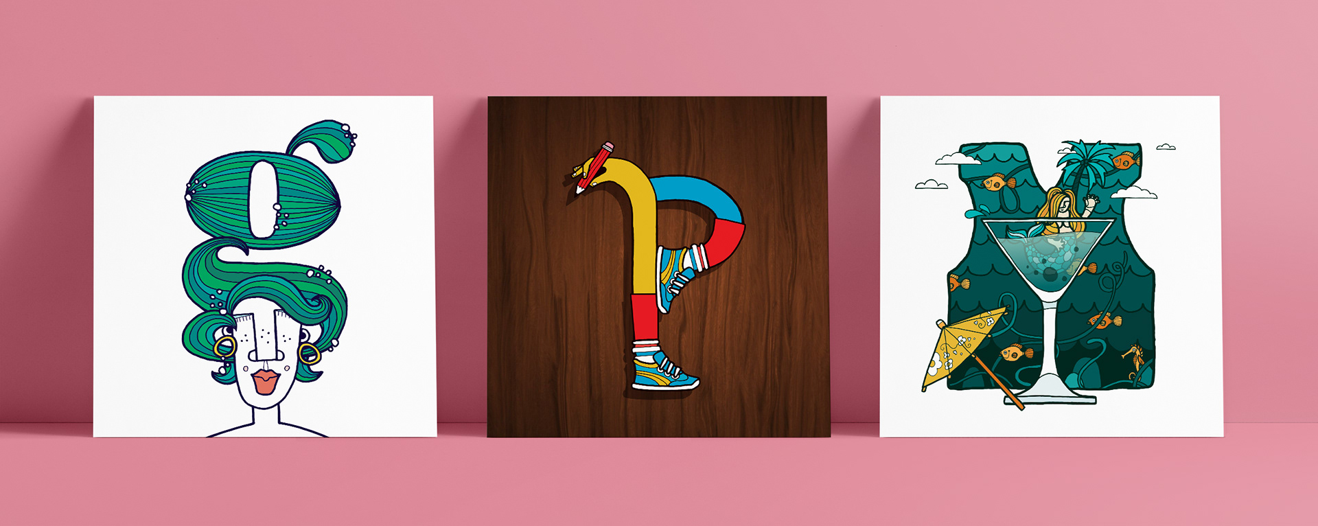 As part of the ‘36 Days of Type’ - an Instagram based design challenge run in association with Adobe, where participants should create & post a different letter of the alphabet for each day of the design challenge. I created several styles of alphabet. Here are some highlights.
