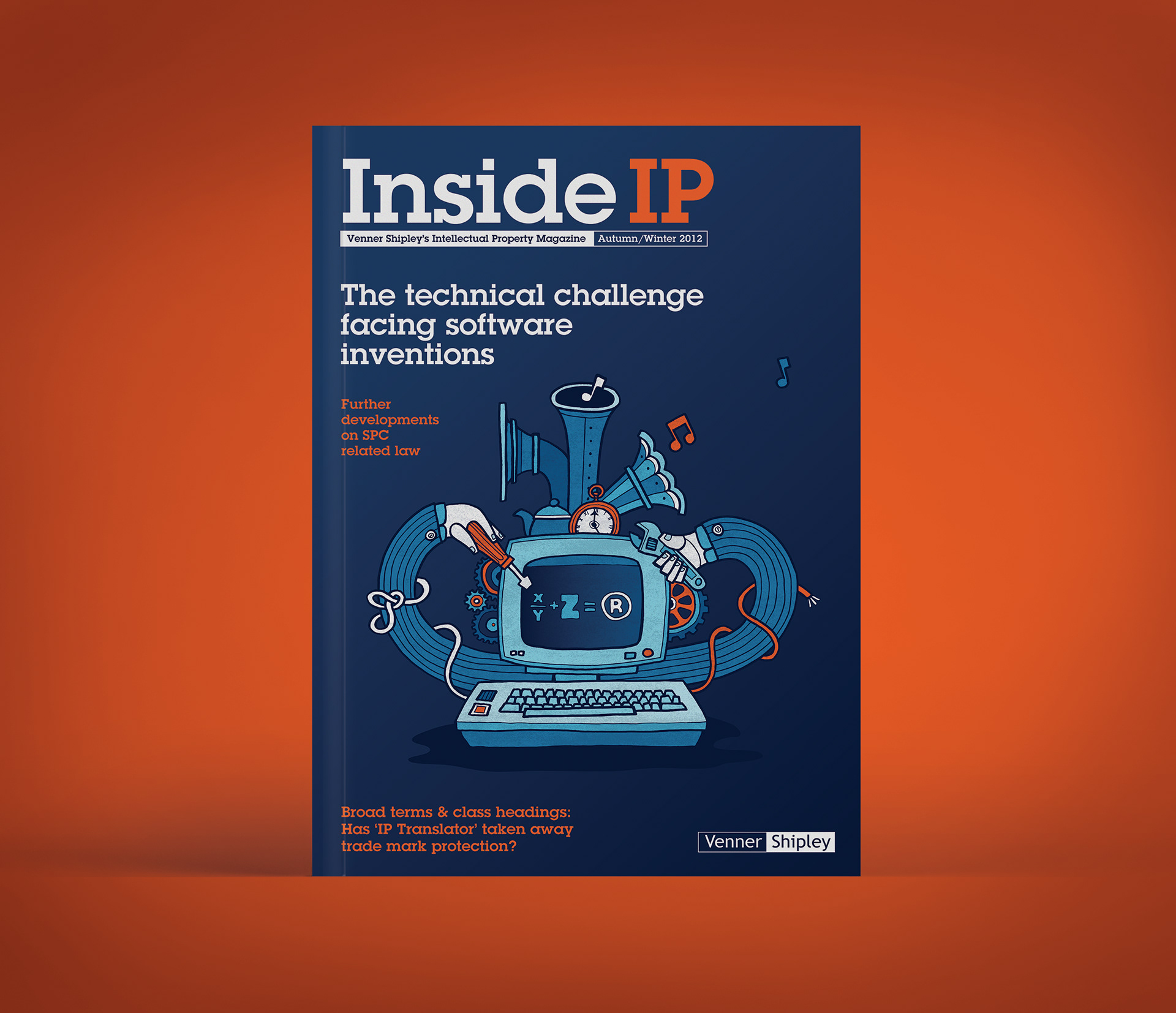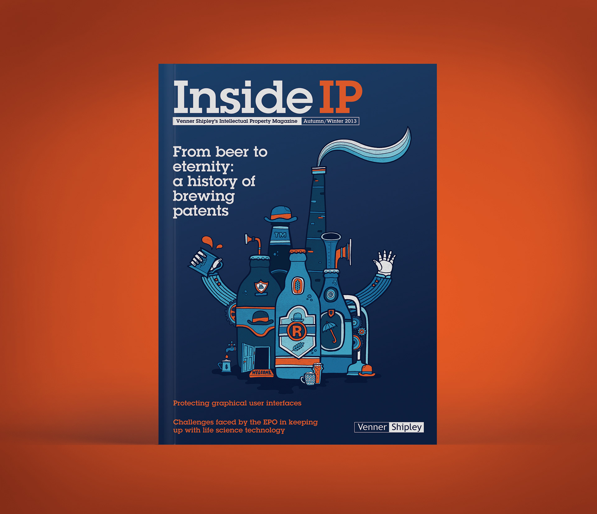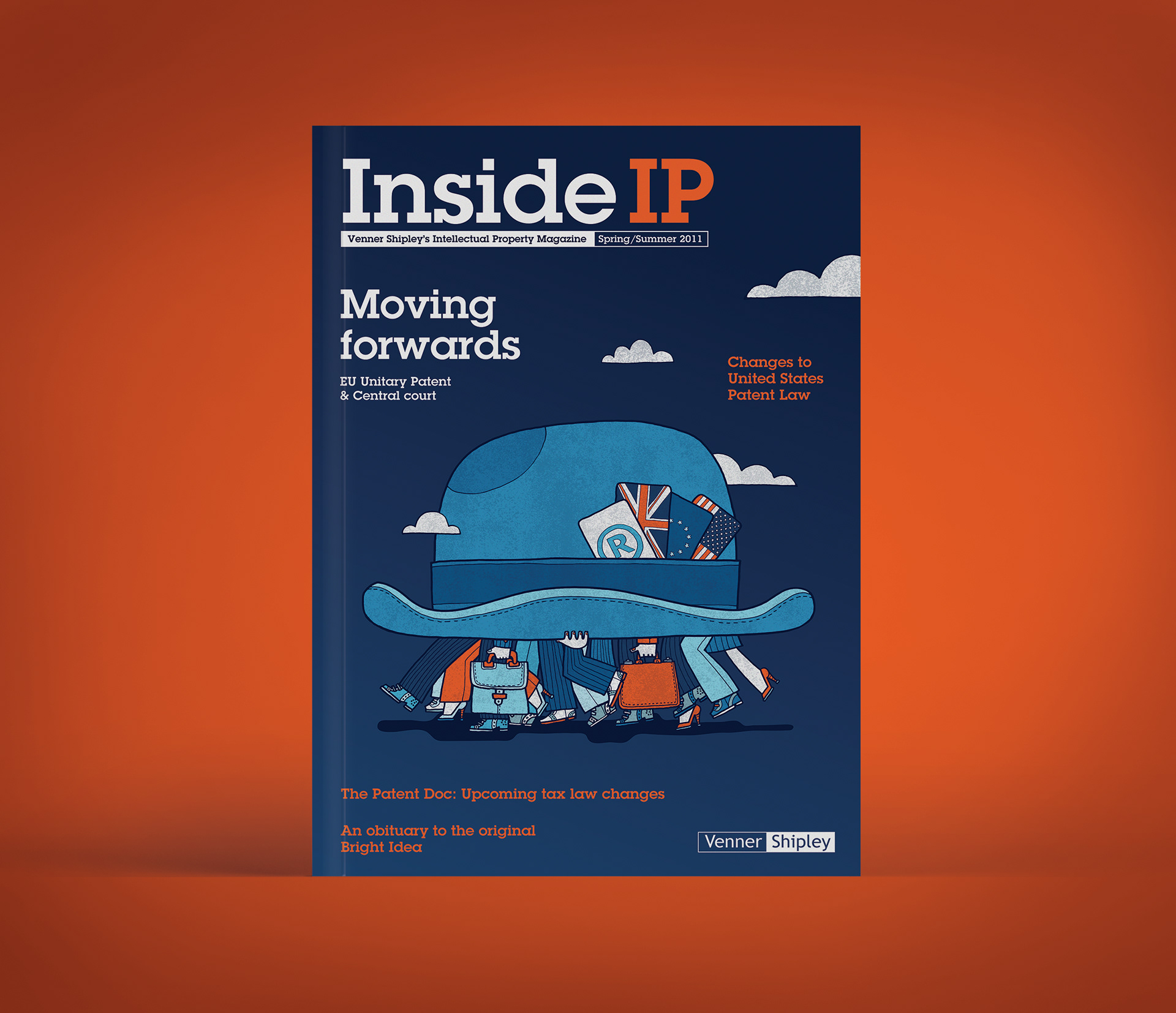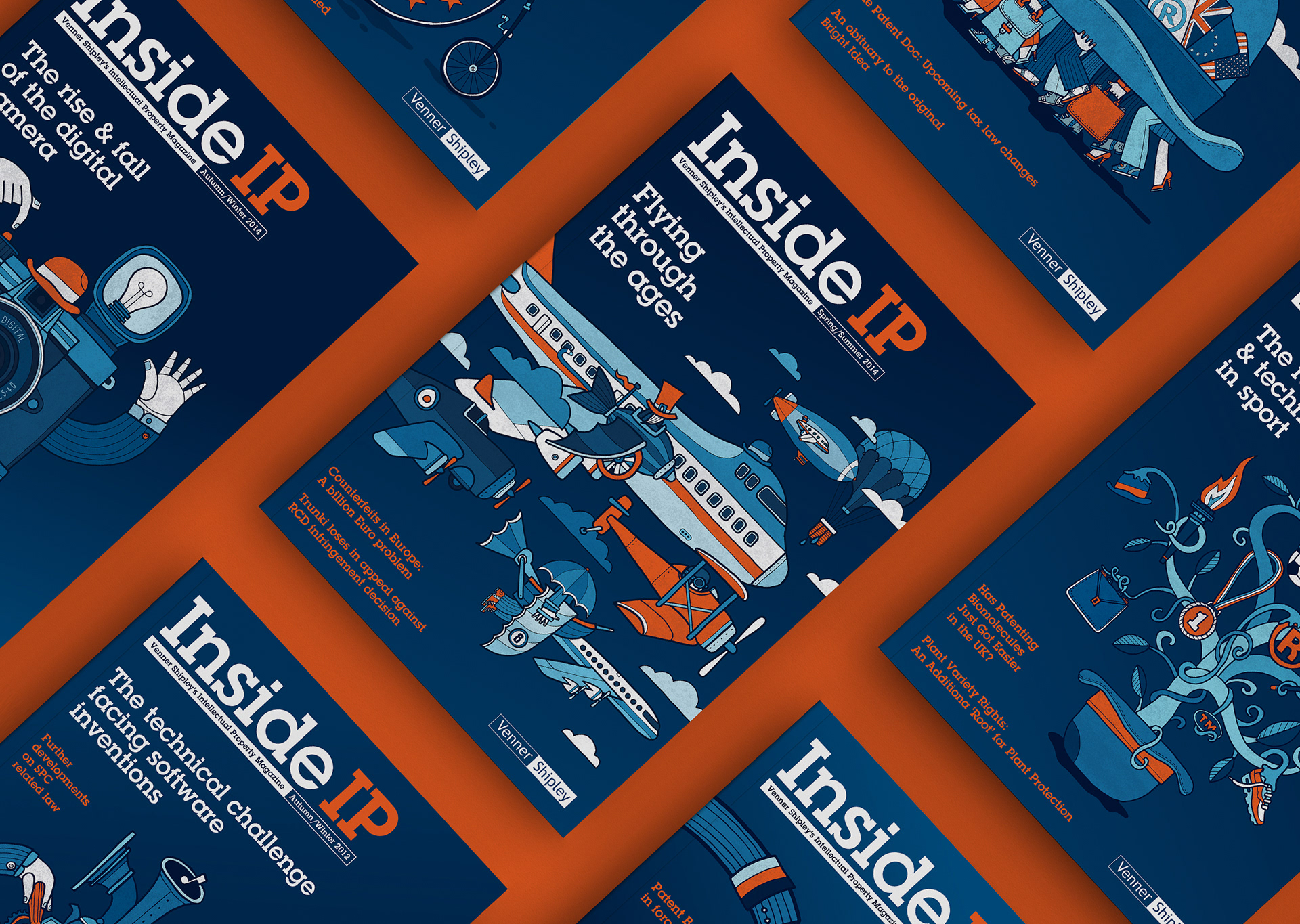 Illustrated covers for Inside IP magazine the intellectual property speciality publication from Venner Shipley. I had the opportunity to work on cover artwork for several issues, in the company's trade mark blue and orange colourscheme which makes for a nice little collection.