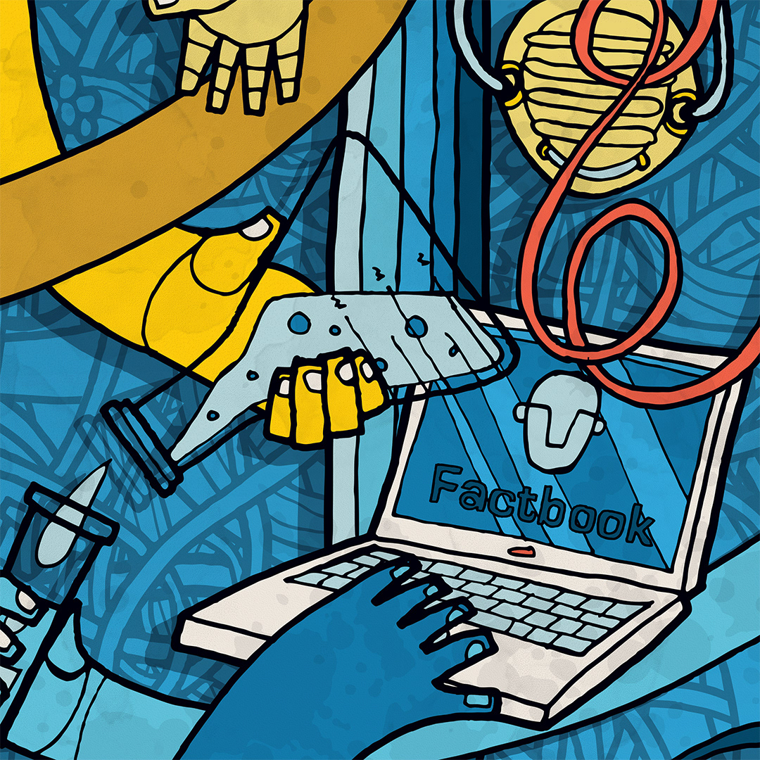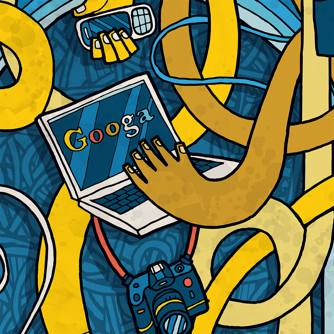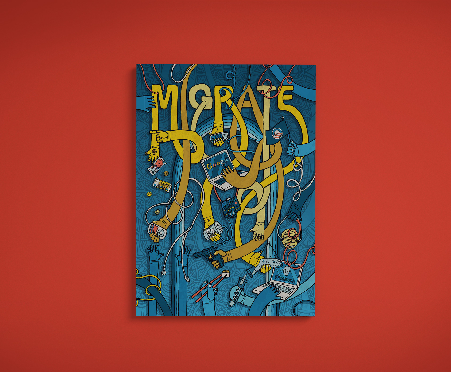 Editorial illustrations for South African design magazine, Migrate. I was commissioned to design two type lead illustrations. One more 'figurative' for the cover & one more patterned for the inside cover. The subject was 'a sign of the times so lots of things to include in the design!
